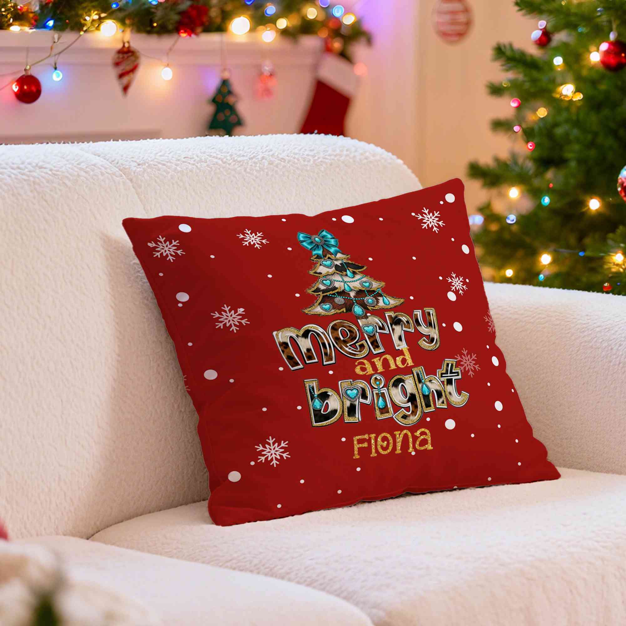 Merry and Bright Design - This throw pillow cover features a joyful “Merry and Bright” design with a sparkling bow Christmas tree and playful leopard prints. The fun mix of festive colors and trendy patterns adds a touch of glam and cheer to any room, instantly lifting the holiday spirit.